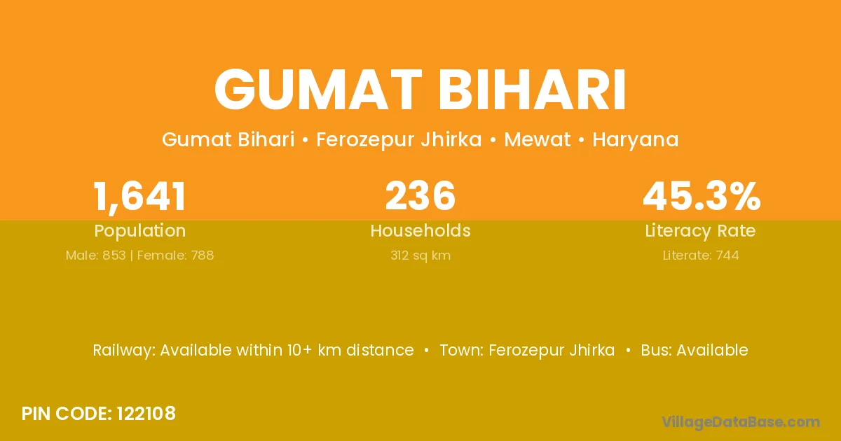 Ferozepur Jhirka is the nearest town to Gumat Bihari village for major economic activities