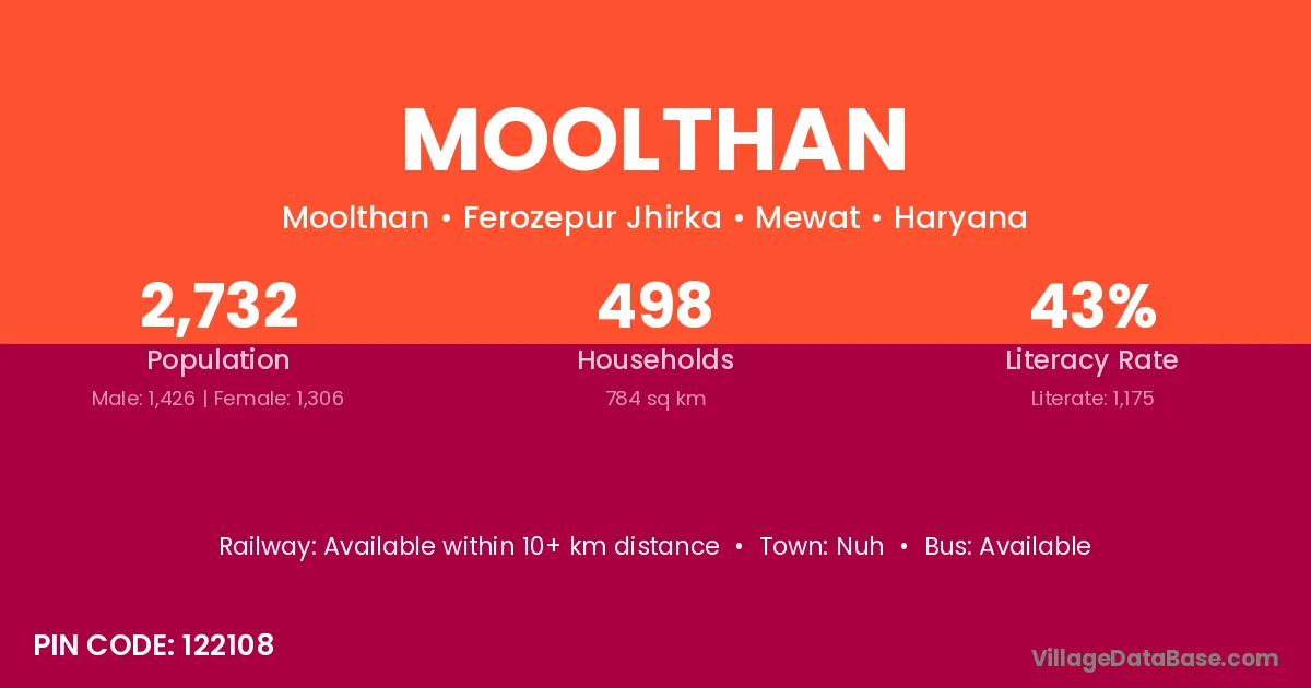 Nuh is the nearest town to Moolthan village for major economic activities