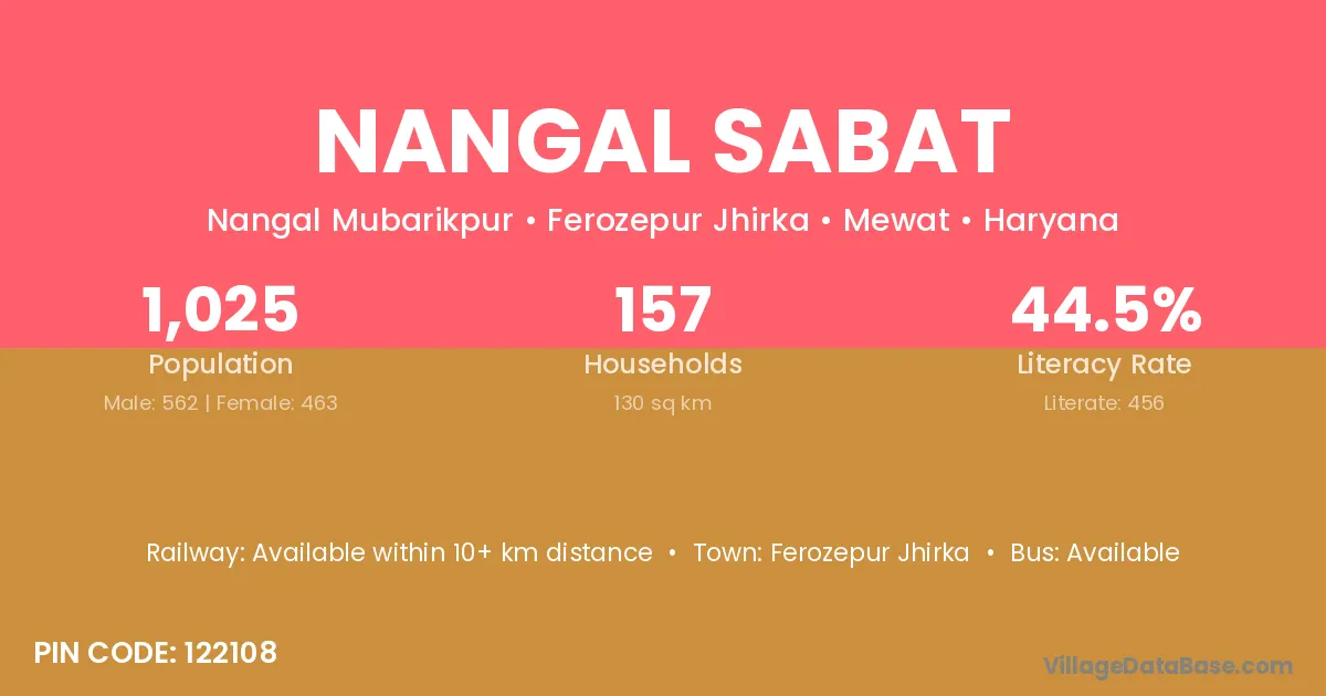 Ferozepur Jhirka is the nearest town to Nangal Sabat village for major economic activities