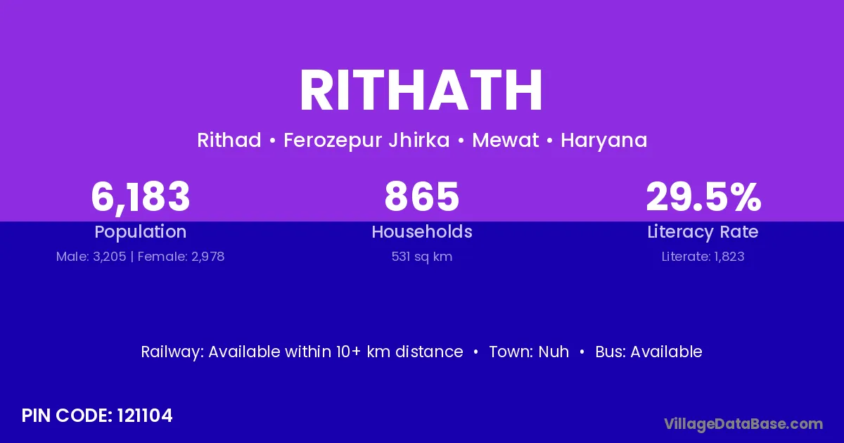 Rithath village has a total population of 6,183 people, of which 3,205 are males and 2,978 are females.