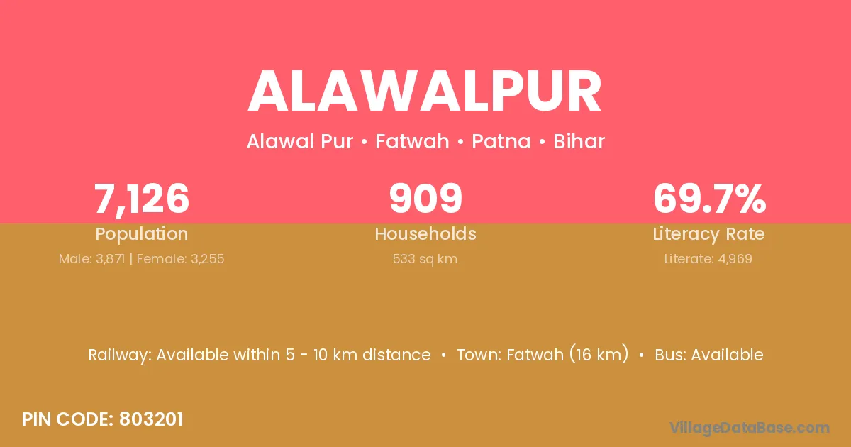 Alawalpur village has a total population of 5,255 people, of which 2,801 are males and 2,454 are females.