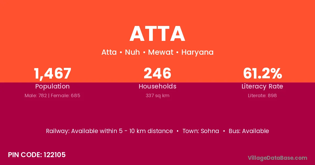 Atta village has a total population of 1,467 people, of which 782 are males and 685 are females.