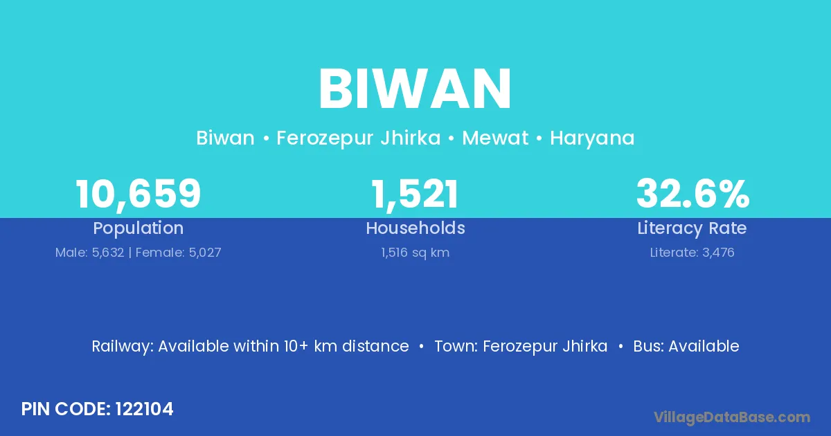 Nuh is the nearest town to Biwan village for major economic activities
