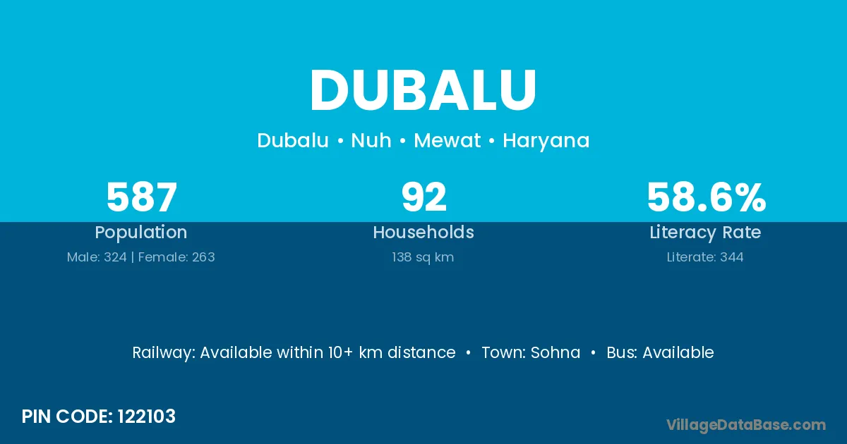 According to Census 2011 information, the village code of Dubalu village is 122103.