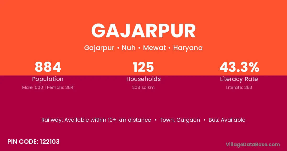 Gajarpur village has a total population of 884 people, of which 500 are males and 384 are females.