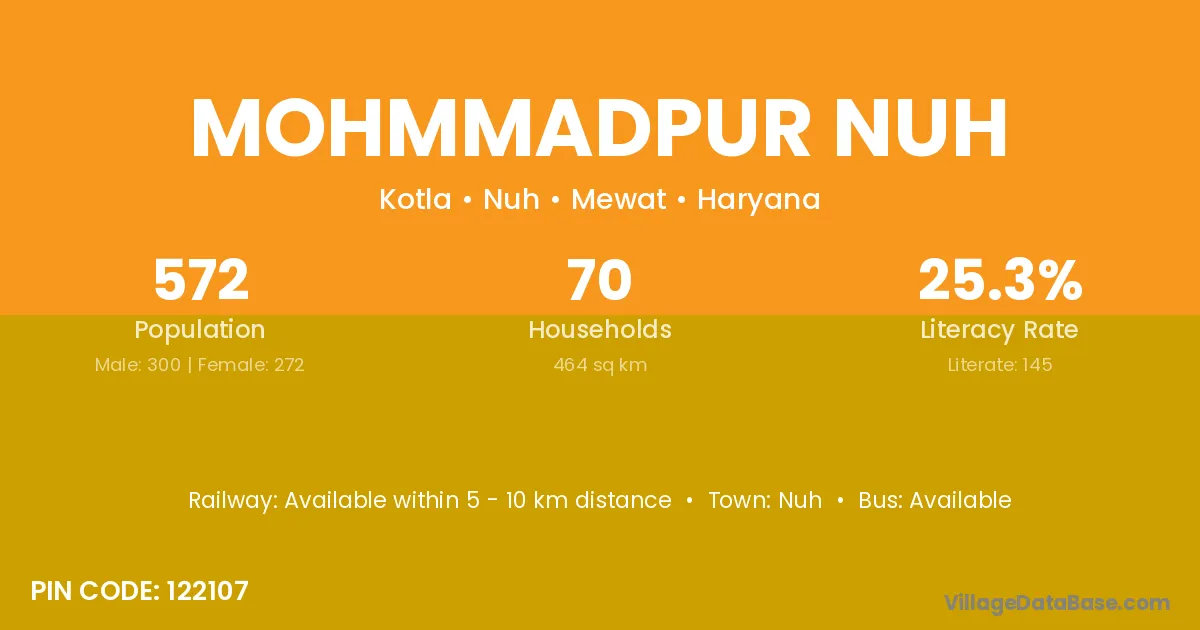 Mohmmadpur Nuh village has a total population of 572 people, of which 300 are males and 272 are females.