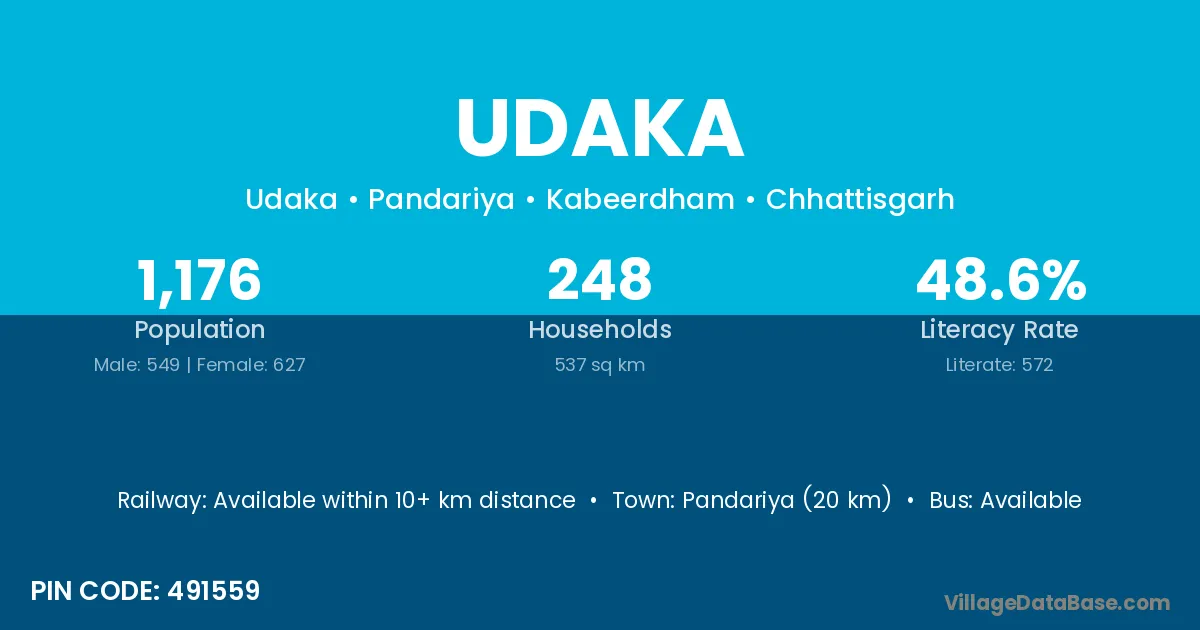 According to Census 2011 information, the village code of Udaka village is 122103.