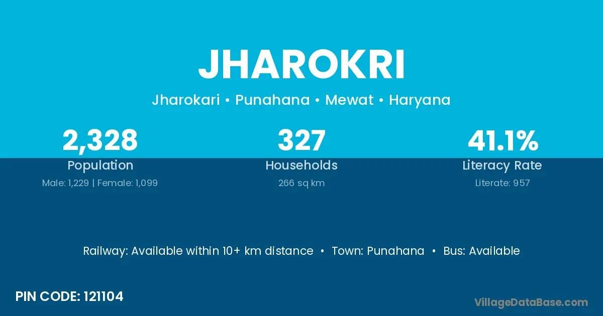Punahana is the nearest town to Jharokri village for major economic activities