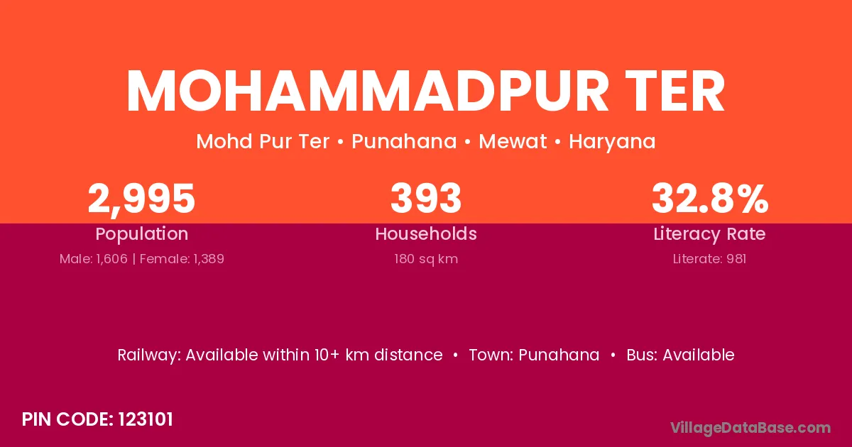 Punahana is the nearest town to Mohammadpur Ter village for major economic activities