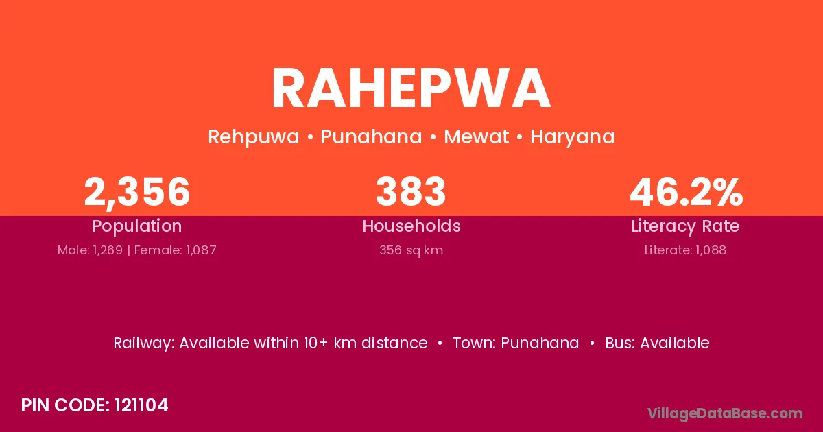 Rahepwa village has a total population of 2,356 people, of which 1,269 are males and 1,087 are females.