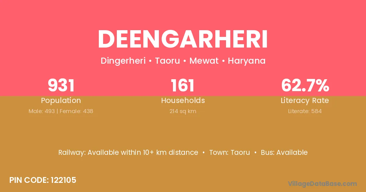 Deengarheri village has a total population of 931 people, of which 493 are males and 438 are females.