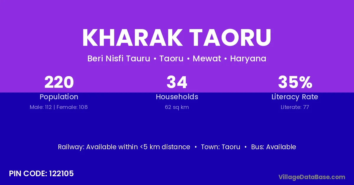 Kharak Taoru village has a total population of 220 people, of which 112 are males and 108 are females.