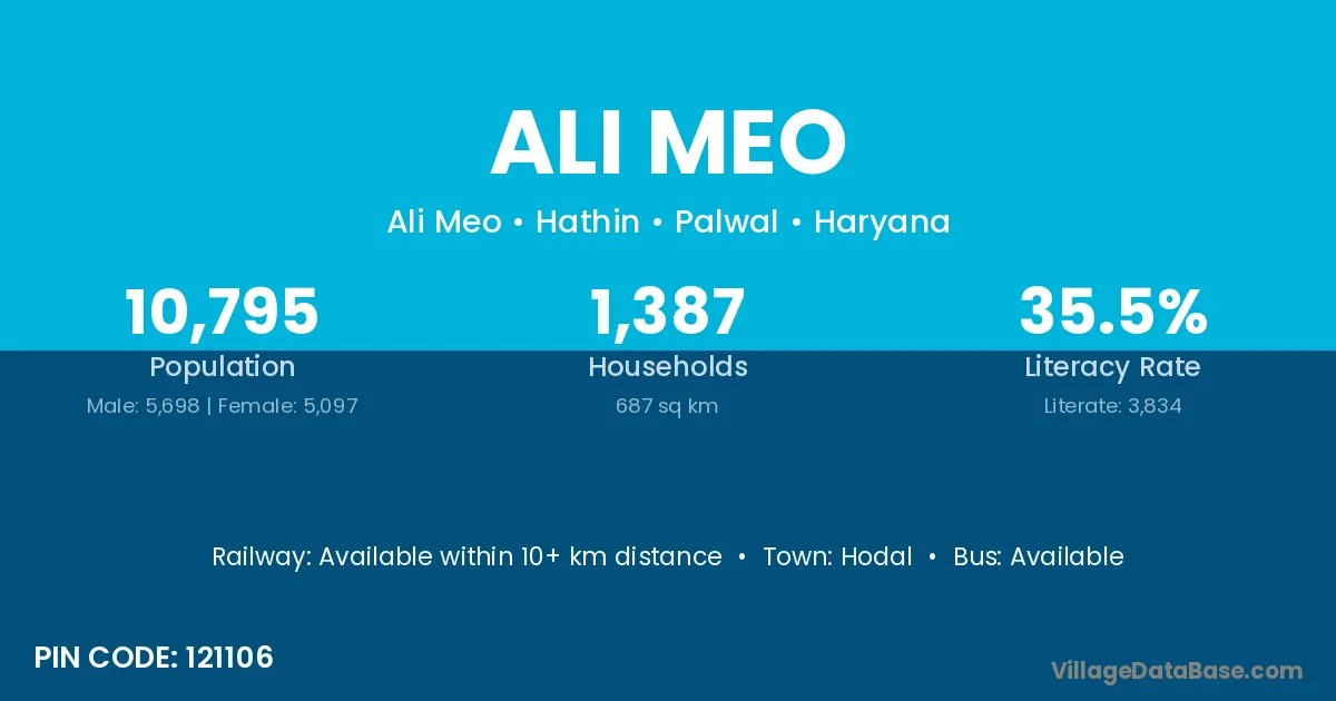 Ali Meo village is located in the Hathin Tehsil of the Palwal district in Haryana .