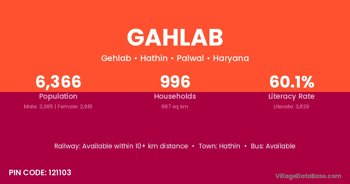 According to Census 2011 information, the village code of Gahlab village is 121103.