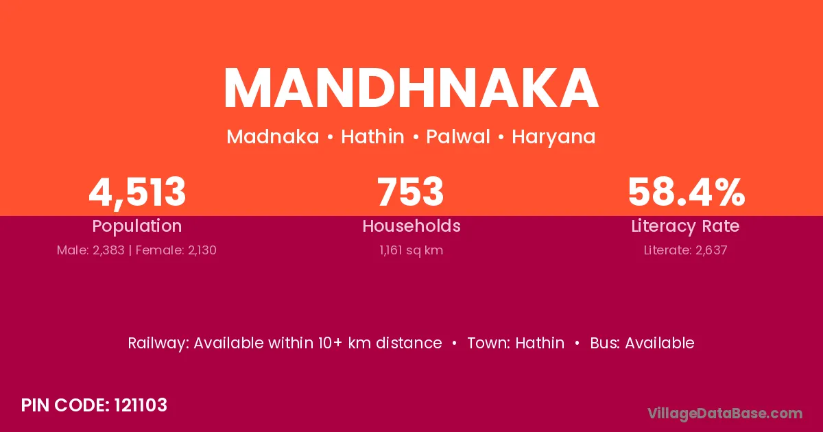 Hathin is the nearest town to Mandhnaka village for major economic activities