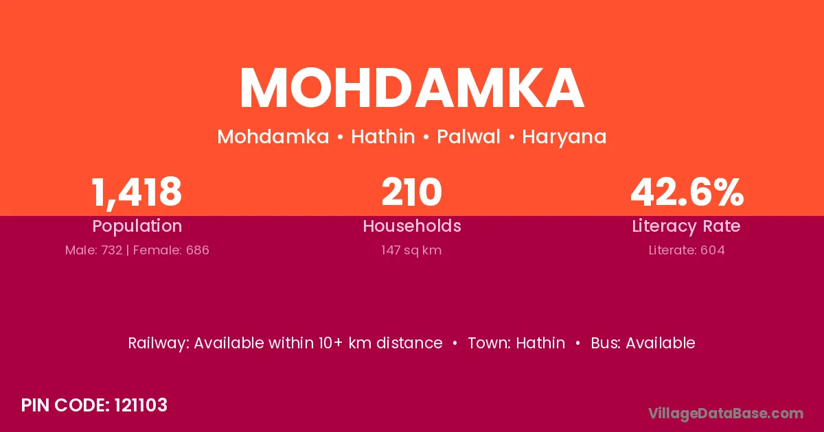Hathin is the nearest town to Mohdamka village for major economic activities