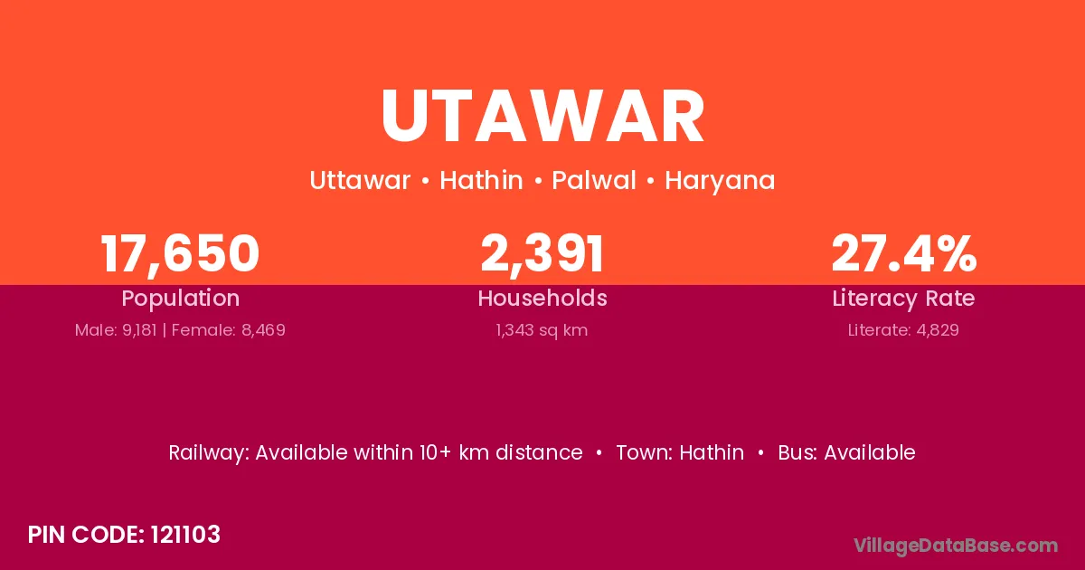 Utawar village has a total population of 17,650 people, of which 9,181 are males and 8,469 are females.