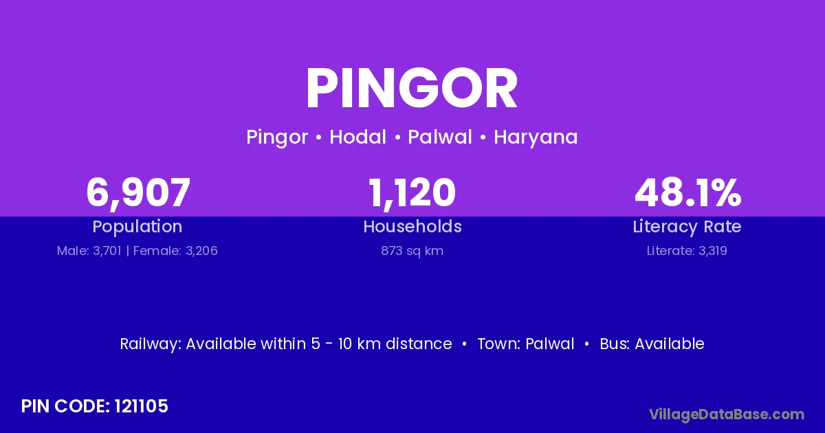 Palwal is the nearest town to Pingor village for major economic activities
