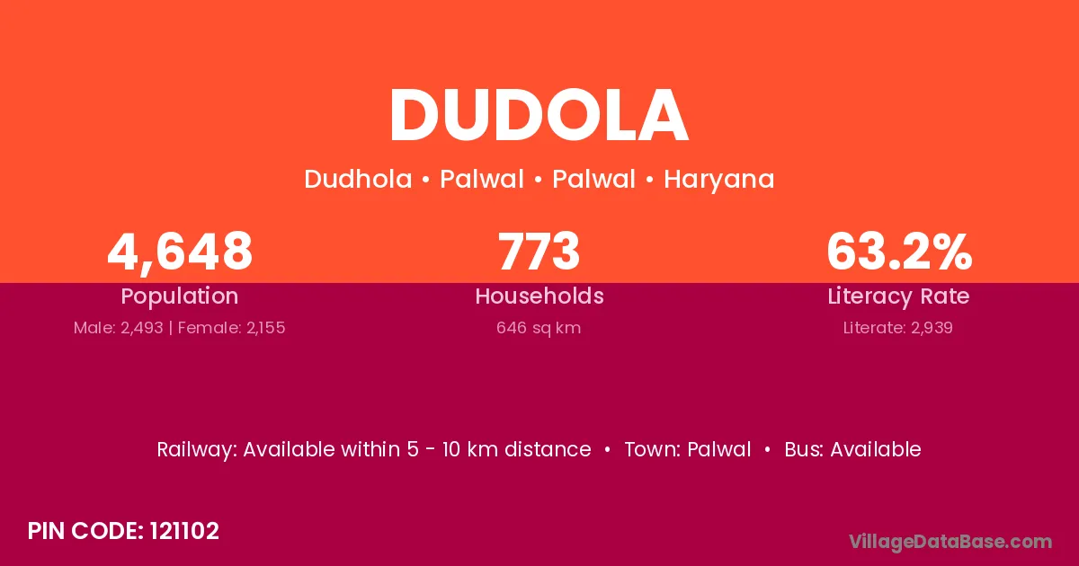 Palwal is the nearest town to Dudola village for major economic activities