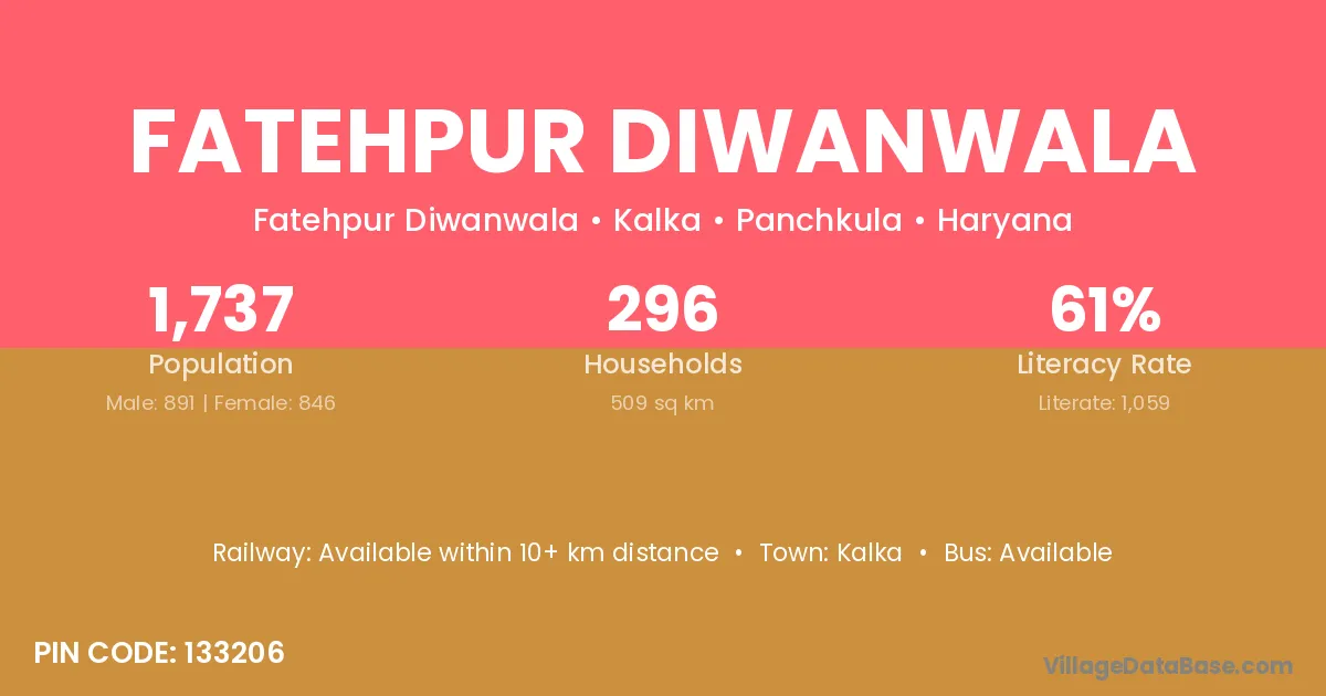 Fatehpur Diwanwala village has a total population of 1,737 people, of which 891 are males and 846 are females.