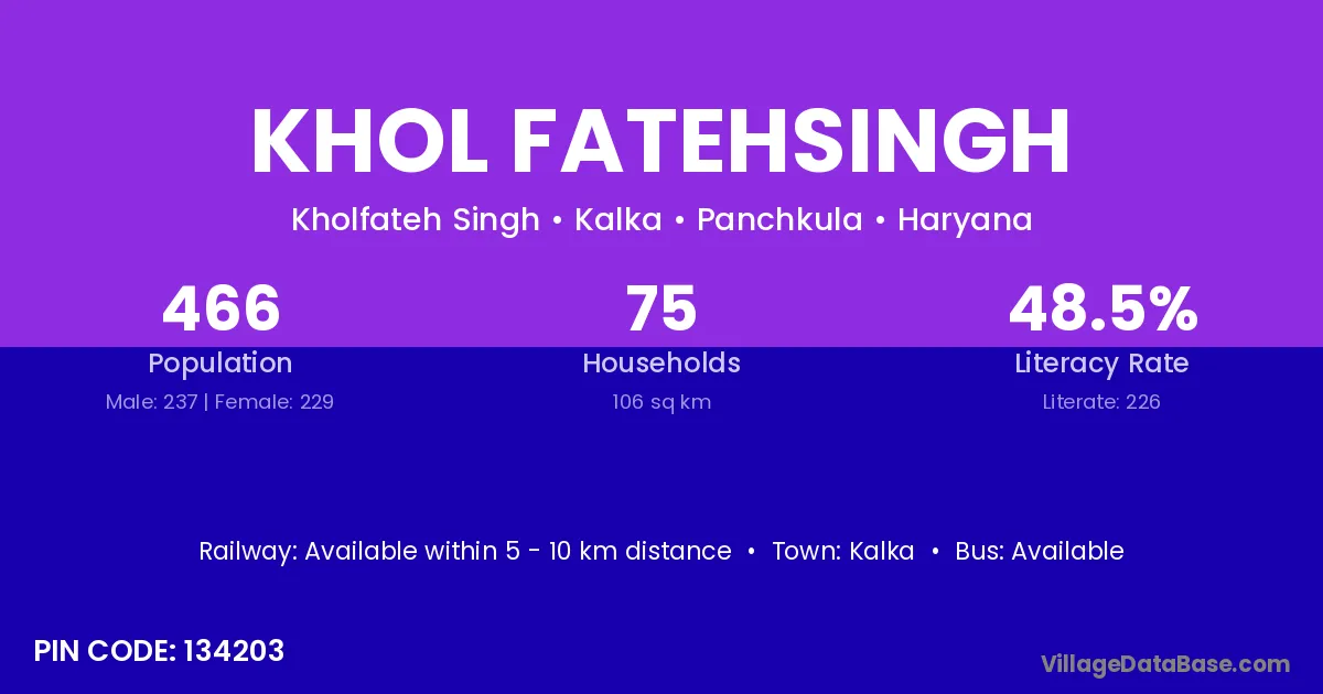 Khol Fatehsingh village has a total population of 466 people, of which 237 are males and 229 are females.