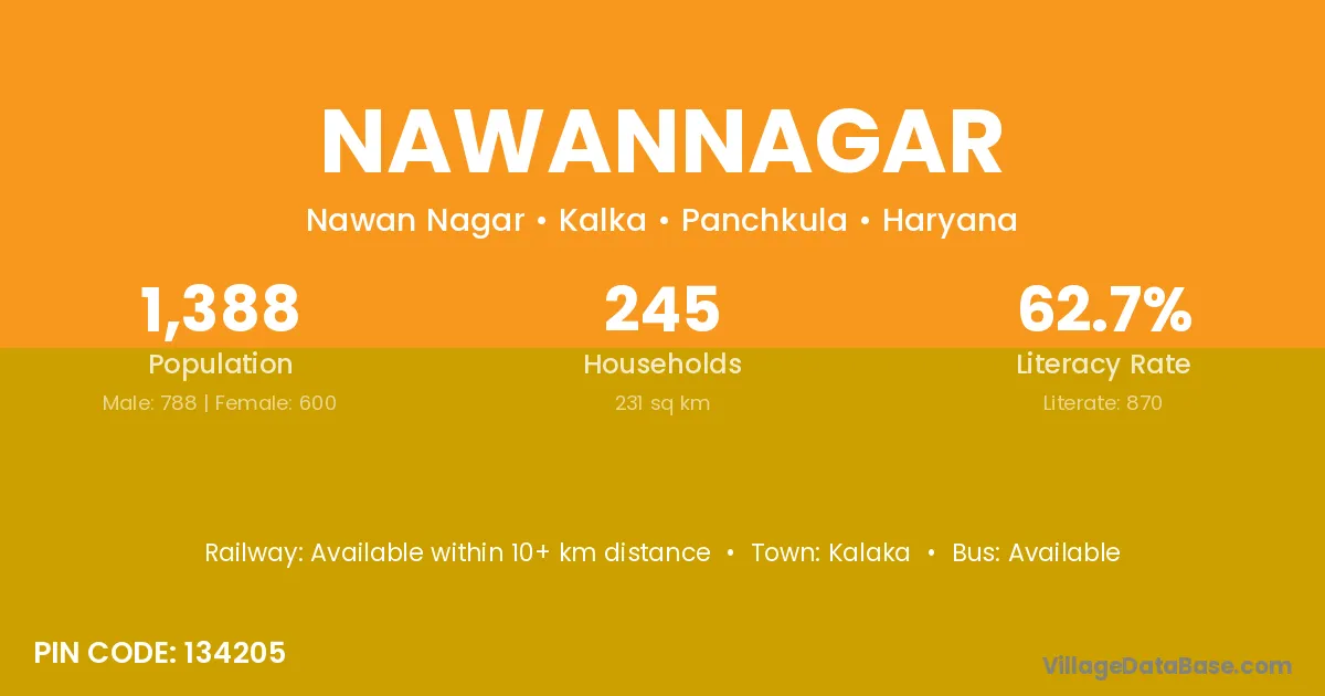 Nawannagar village has a total population of 1,388 people, of which 788 are males and 600 are females.