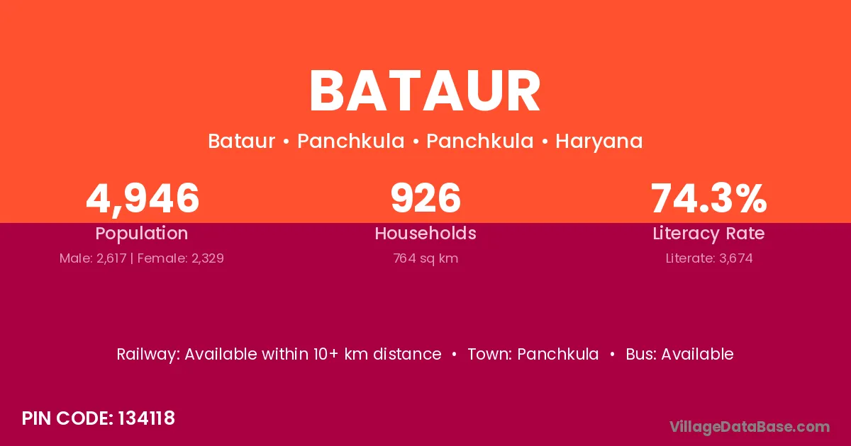 Bataur village has a total population of 4,946 people, of which 2,617 are males and 2,329 are females.