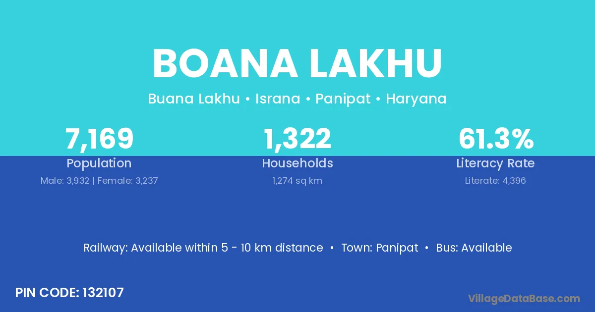 Panipat is the nearest town to Boana Lakhu village for major economic activities