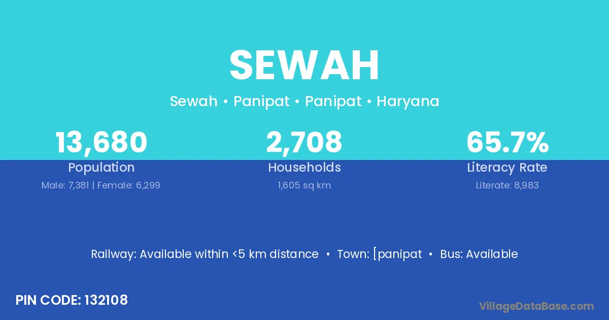 Sewah village has a total population of 13,680 people, of which 7,381 are males and 6,299 are females.