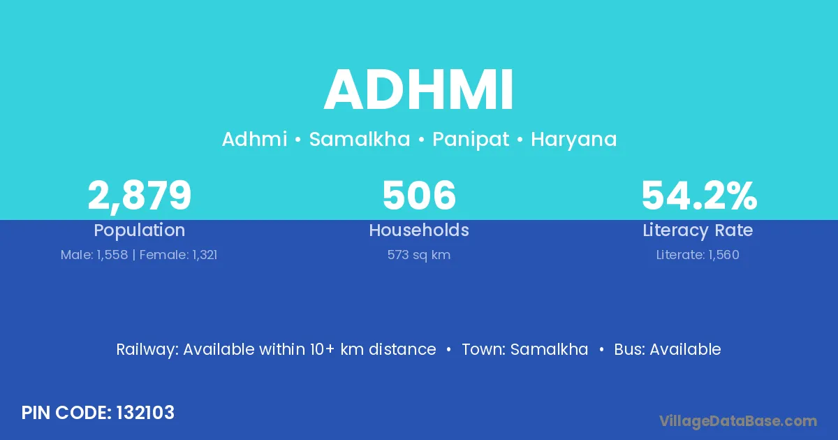 Samalkha is the nearest town to Adhmi village for major economic activities