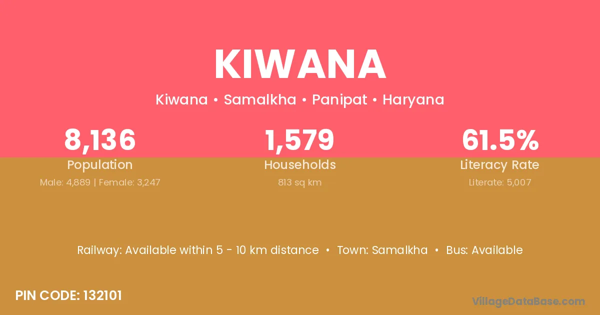 Kiwana village has a total population of 8,136 people, of which 4,889 are males and 3,247 are females.