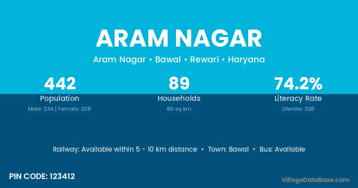 Bawal is the nearest town to Aram Nagar village for major economic activities