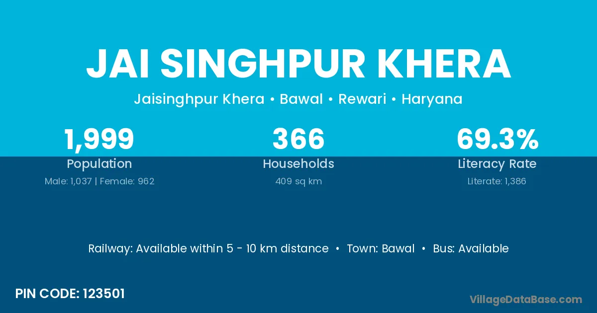 Jai Singhpur Khera village has a total population of 1,999 people, of which 1,037 are males and 962 are females.