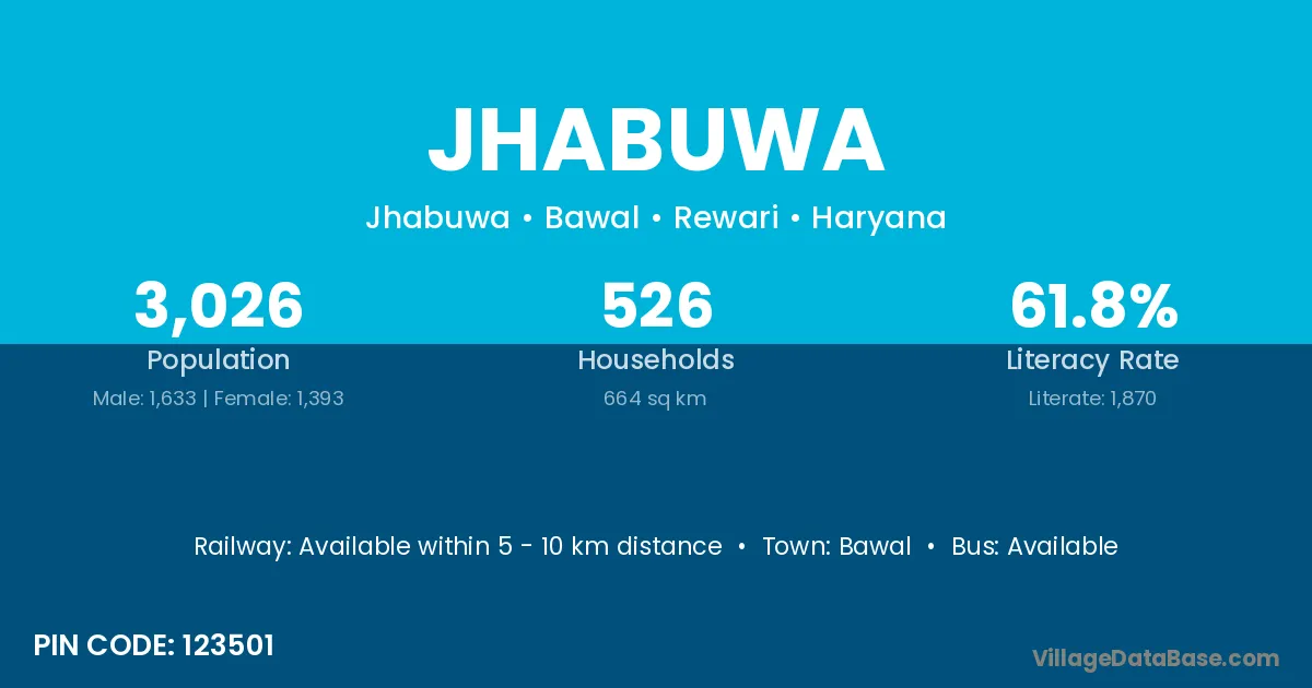 According to Census 2011 information, the village code of Jhabuwa village is 123501.
