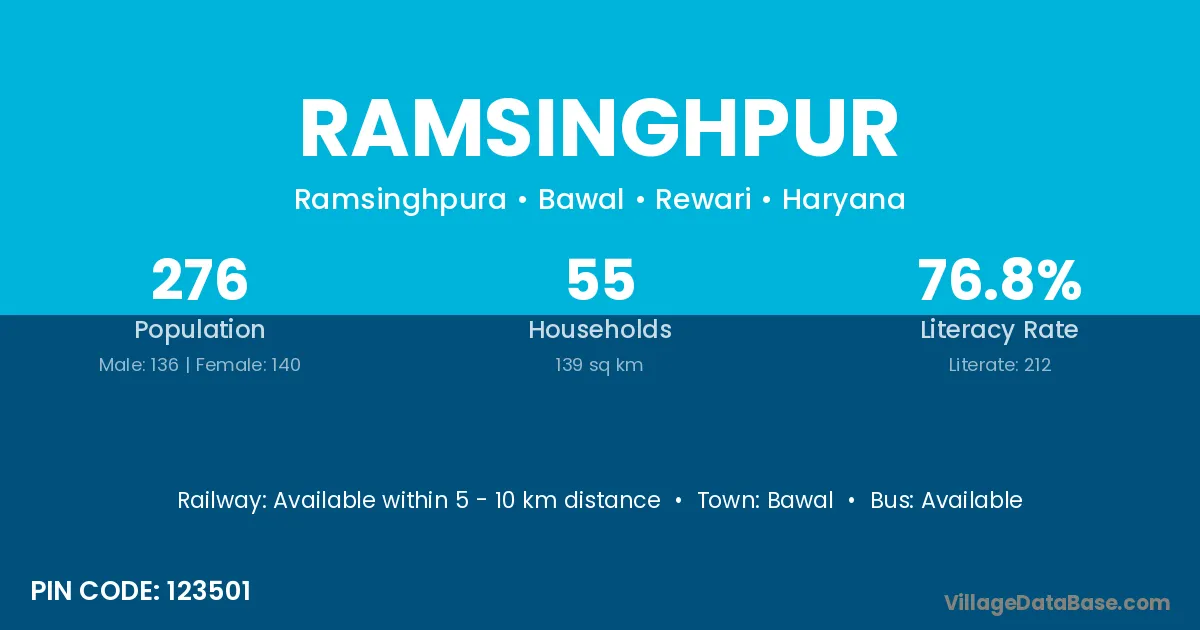 Bawal is the nearest town to Ramsinghpur village for major economic activities