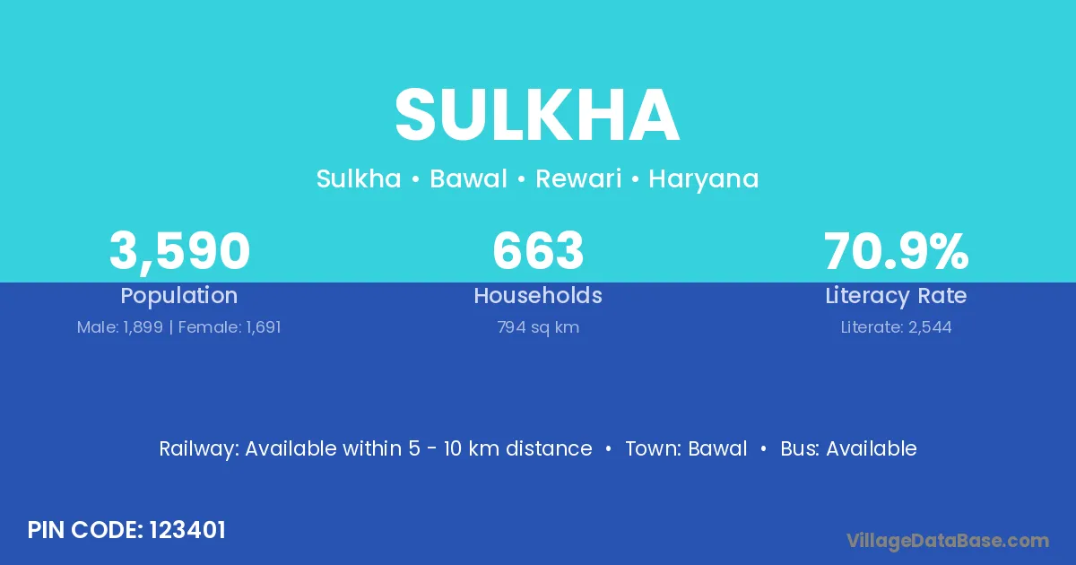 Bawal is the nearest town to Sulkha village for major economic activities