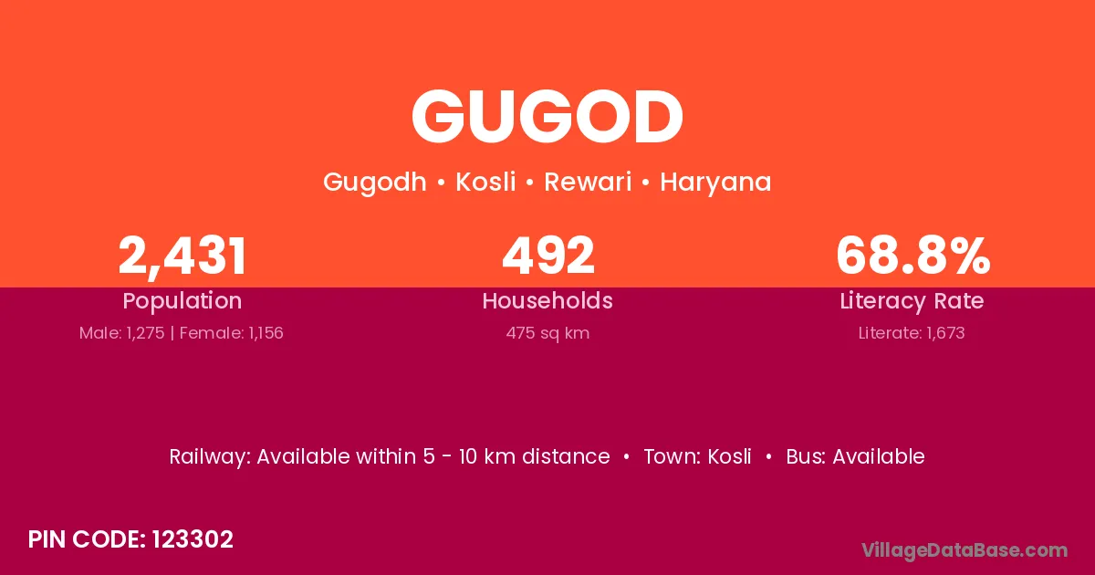 Gugod village has a total population of 2,431 people, of which 1,275 are males and 1,156 are females.