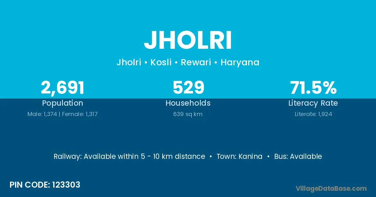 According to Census 2011 information, the village code of Jholri village is 123303.