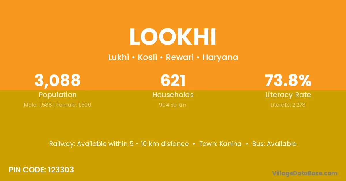 Lookhi village has a total population of 3,088 people, of which 1,588 are males and 1,500 are females.
