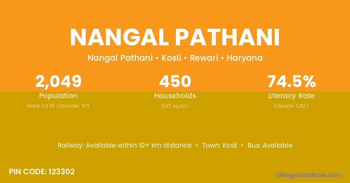 According to Census 2011 information, the village code of Nangal Pathani village is 123302.