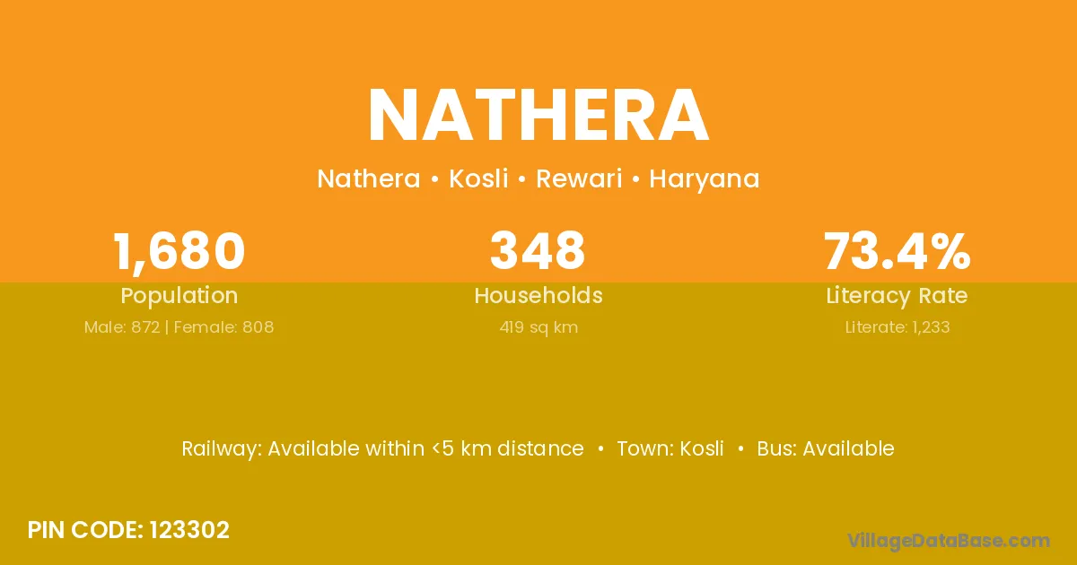 According to Census 2011 information, the village code of Nathera village is 123302.