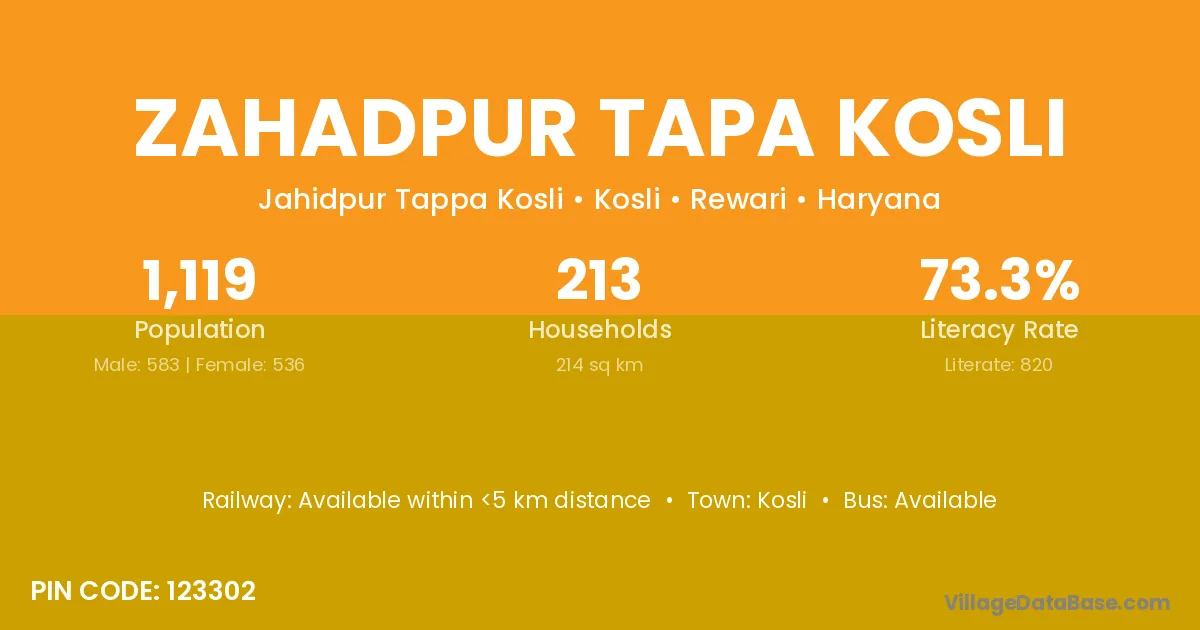 Zahadpur Tapa Kosli village has a total population of 1,119 people, of which 583 are males and 536 are females.