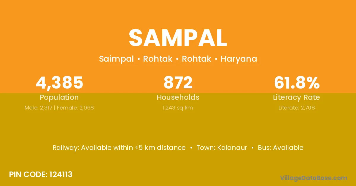 According to Census 2011 information, the village code of Sampal village is 124113.