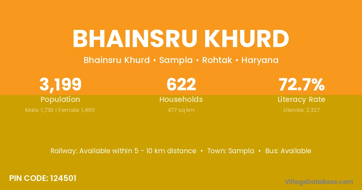 Sampla is the nearest town to Bhainsru Khurd village for major economic activities