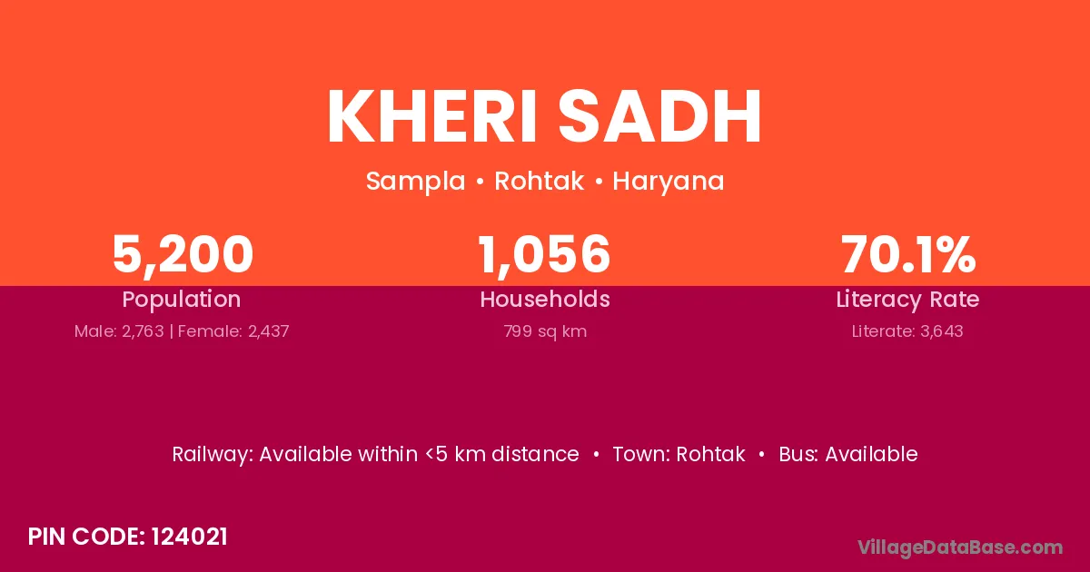 Rohtak is the nearest town to Kheri Sadh village for major economic activities