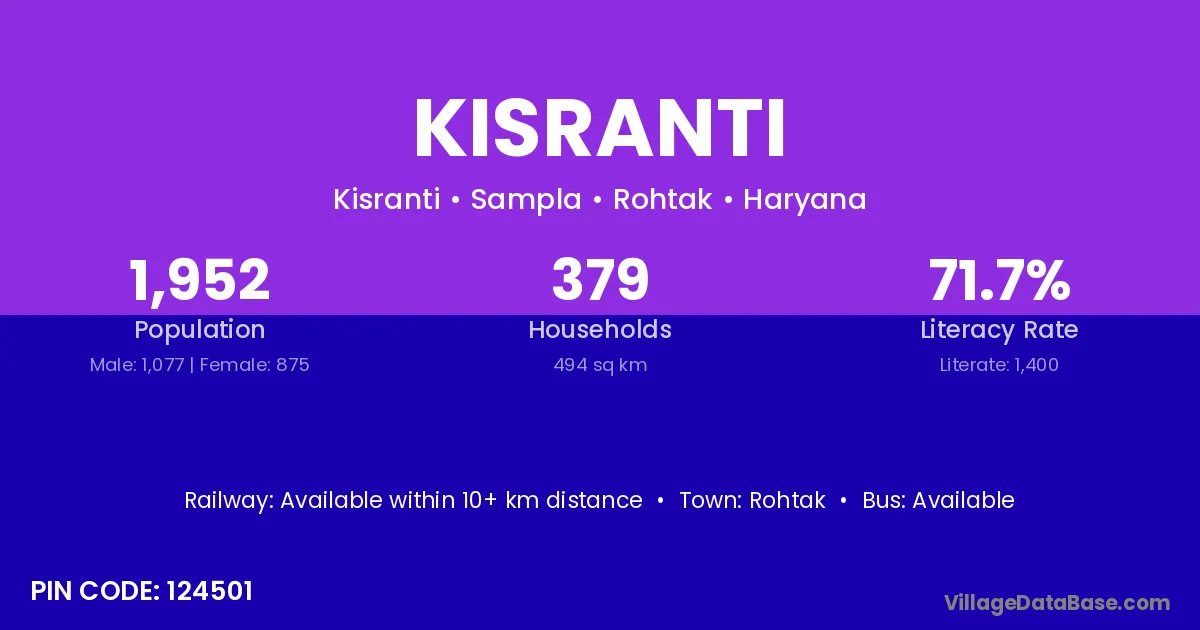 Rohtak is the nearest town to Kisranti village for major economic activities