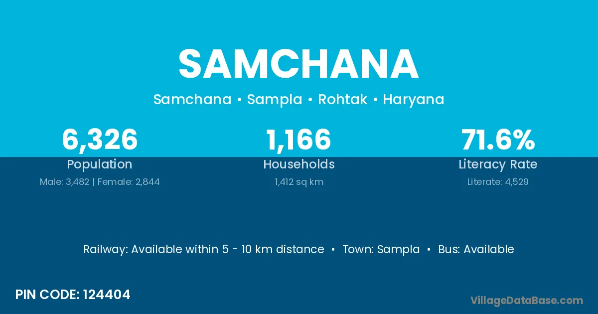 Samchana village has a total population of 6,326 people, of which 3,482 are males and 2,844 are females.
