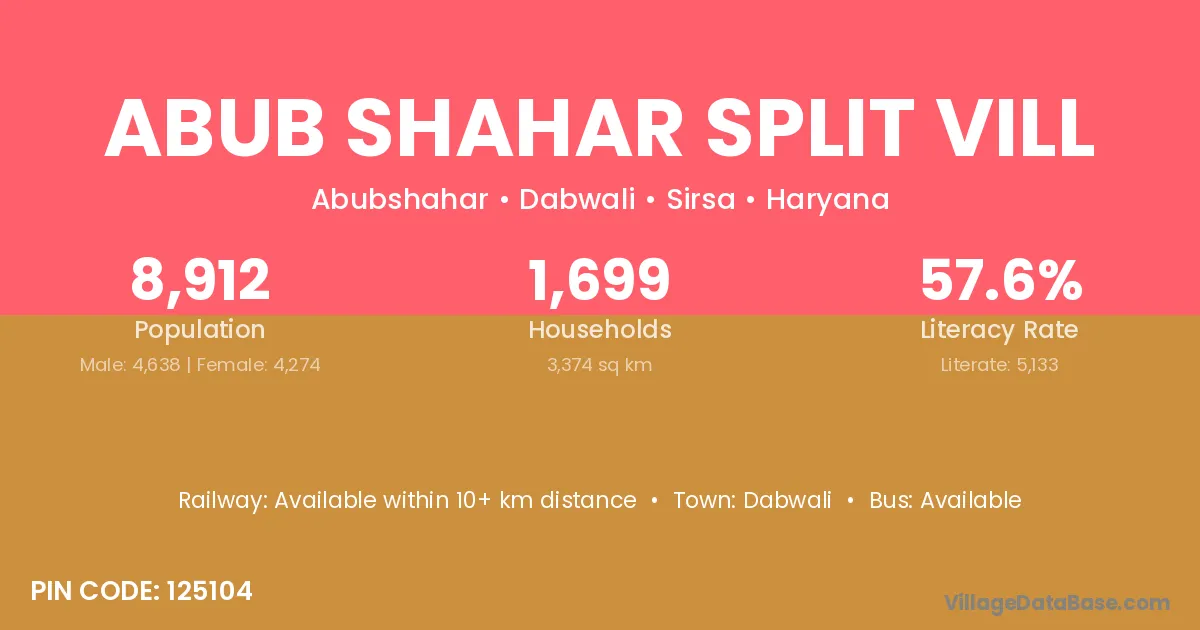 Dabwali is the nearest town to Abub Shahar Split Vill village for major economic activities
