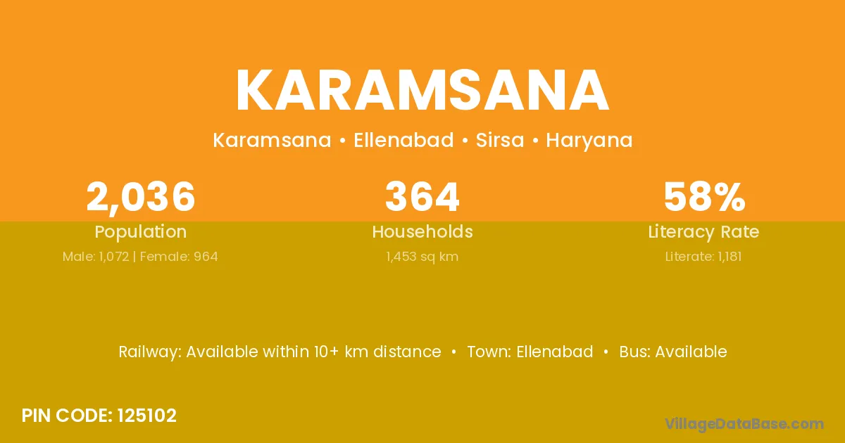 Ellenabad is the nearest town to Karamsana village for major economic activities