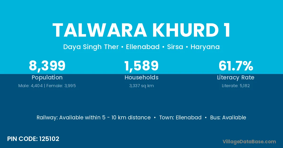 Ellenabad is the nearest town to Talwara Khurd 1 village for major economic activities